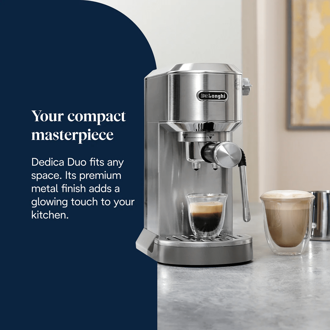 With Dedica Duo, experience convenience, versatility, and sleek Italian design in an unmatched compact footprint. Craft Hot & Iced Drinks & Cold Brew. With three preset recipes – Espresso, Double Espresso & Cold Brew, now you can customize your favorite hot and iced drinks to your exact preferences every time Optimal…